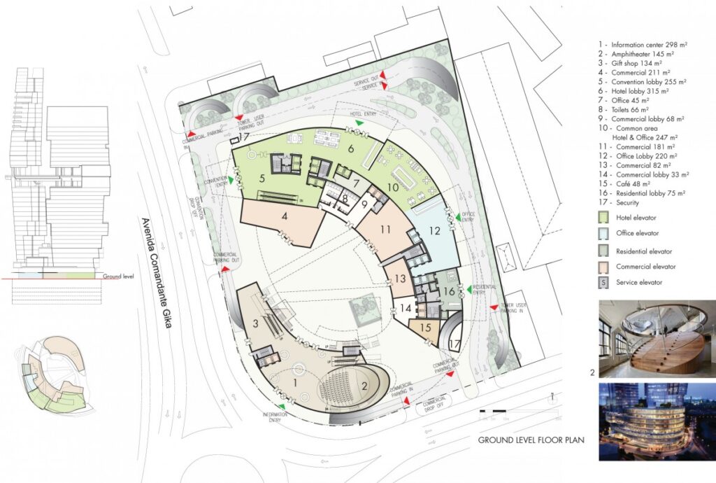 The complex includes spaces for a luxury hotel, an office complex, exclusive residences and a shopping mall, on a total area of 75.000 square meters.